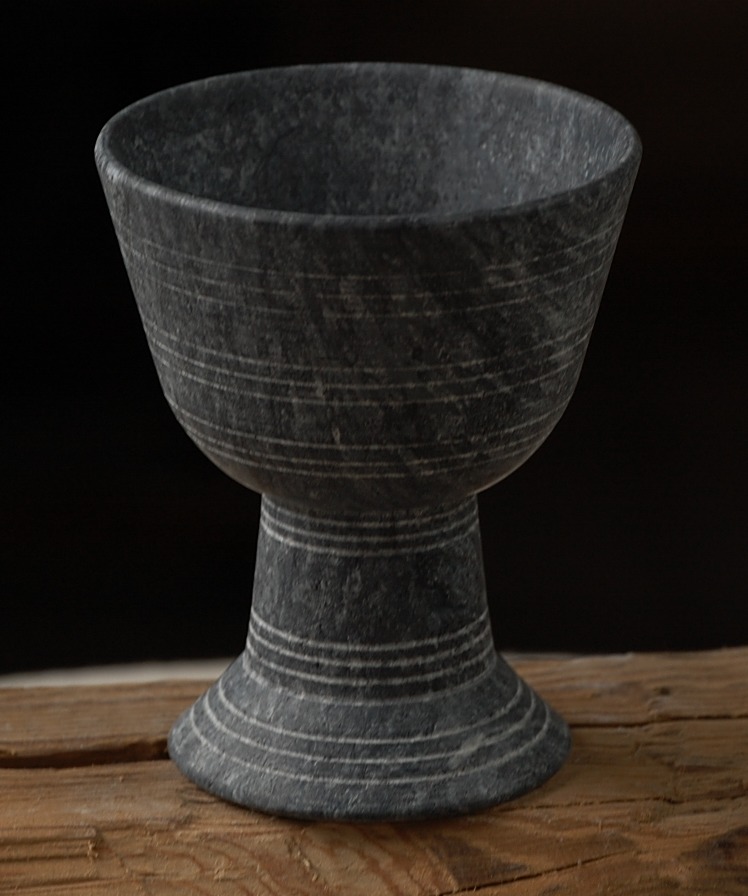 Bicchieri in pietra ollare, tipo di lavorazione, tornitura a mano. Eleganti bicchieri, forme tradizionali della Valchiavenna.