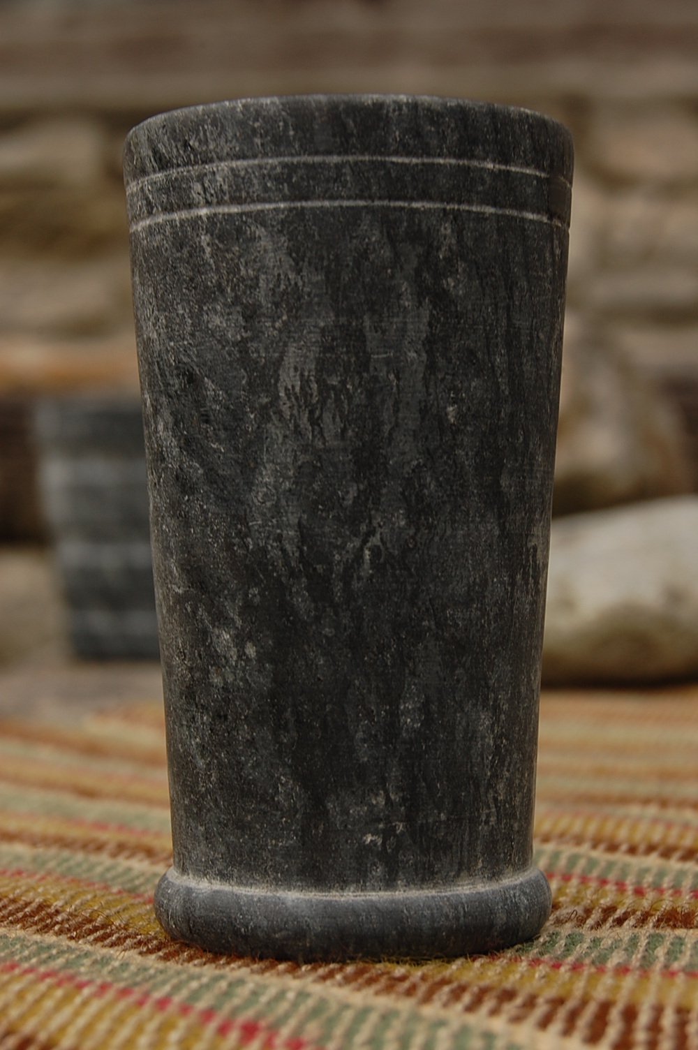 Bicchieri in pietra ollare, tipo di lavorazione, tornitura a mano. Eleganti bicchieri, forme tradizionali della Valchiavenna.